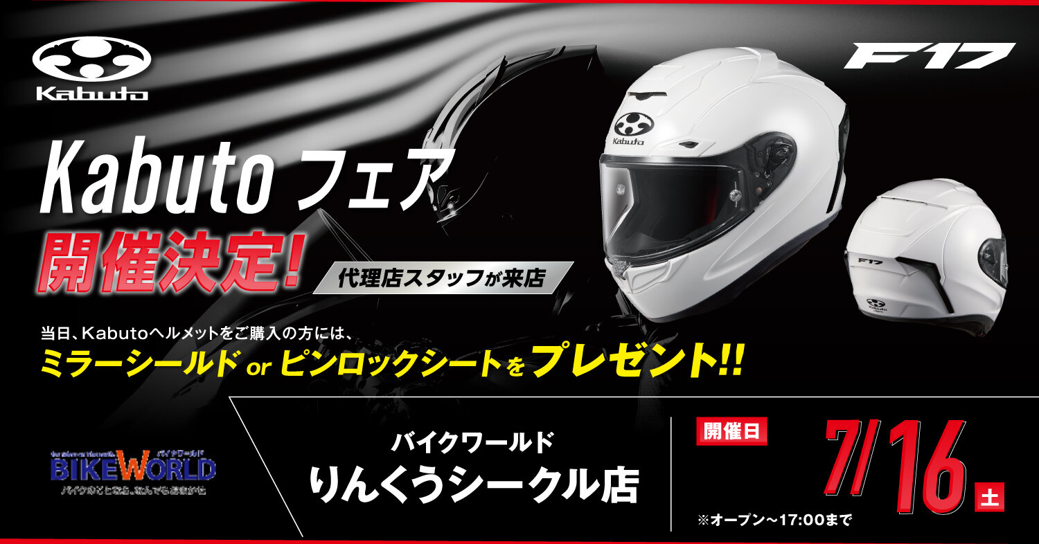 イベント開催期間中に、Kabutoヘルメットをご購入の方には、ミラーシールド or ピンロックシートをプレゼントいたします!Kabutoフェアだけのスペシャルプレゼントですので、この機会をお見逃しなく!