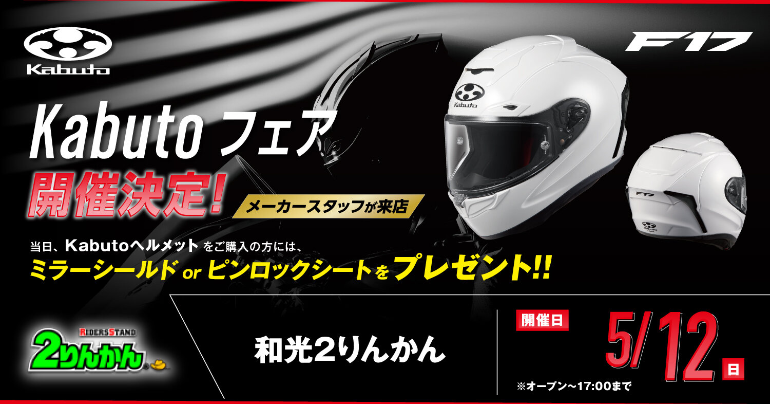 イベント開催期間中に、Kabutoヘルメットをご購入の方には、ミラーシールド or ピンロックシートをプレゼントいたします!Kabutoフェアだけのスペシャルプレゼントですので、この機会をお見逃しなく!