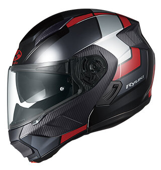 RYUKIはKabuto独自の空力デバイス「ウェイクスタビライザー」や、スタイルと強度を両立するエッジを効かせたシェイプが特徴的な帽体に、チンオープン、インナーサンシェード機能&IRカットシールドを装備。さらに従来のシステムヘルメットより軽量化を実現するなど、多様な快適機能を兼ね備えています。ライダーがライディングに集中、存分にバイクを楽しむことを目的とした新世代のシステムヘルメットです。