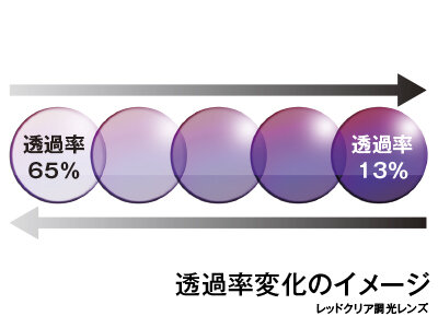 ・標準付属レンズカラー(可視光線透過率) : レッドクリア調光(65%~13%)