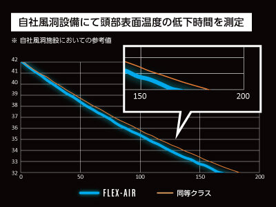 | 社内風洞実験による同等クラスのヘルメットとの比較 | 同等クラスのヘルメットと比べ最大「8%」空冷効果が高い |