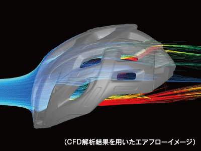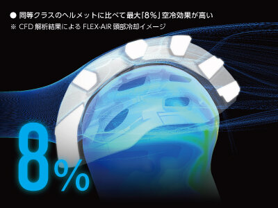 同等クラスのヘルメットに比べて最大「8%」空冷効果が高いことを社内風洞実験で実証。