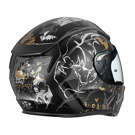 「NIGHTER」は、静寂の夜を支配するコウモリをモチーフにした、ミステリアスでダークな世界観を表現したグラフィックモデルです。左右非対称のアシンメトリーデザインが大胆さと緻密さを兼ね備え、夜の静けさにひそむ力強さと存在感を際立たせています。