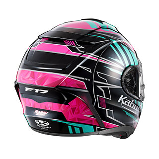 F-17は「全方向型エアロダイナミクス」をメインコンセプトに掲げたレーシングモデル。空力デバイスにより走行中の気流をコントロールし、ライダーへの負荷を軽減する最新のエアロテクノロジーを集結させたフラッグシップヘルメットです。