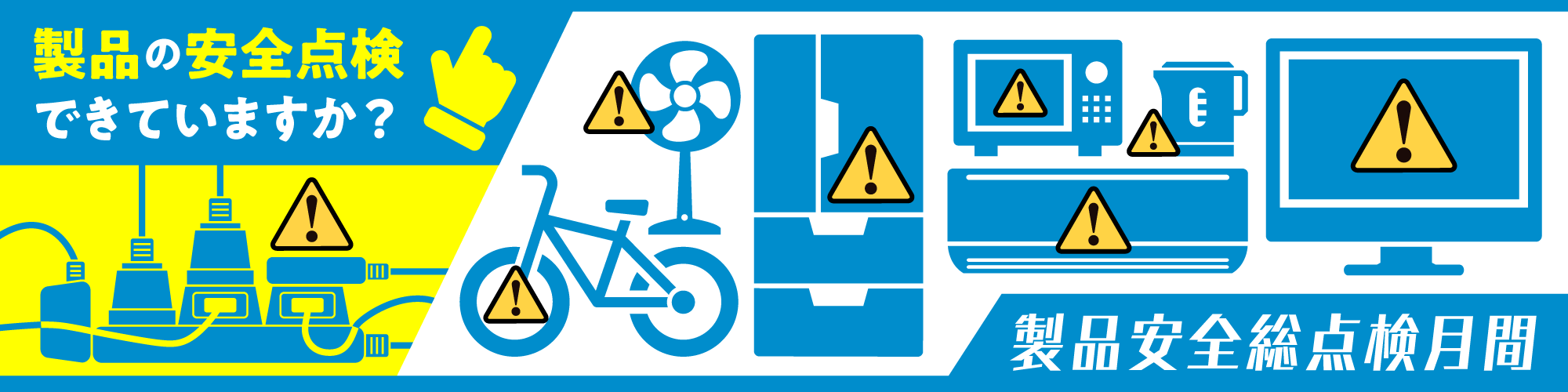 経済産業省では毎年、11月の一ヶ月間を『製品安全総点検月間』として設定し、製品を安全に使用いただくため、安全点検の呼びかけやイベントの実施など様々な取り組みをしています。![]()