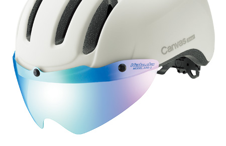 アイウェアの代わりとして使える別売のカラーシールドを装着可能。