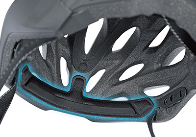 頭部からヘルメットを浮かせてエアルートを確保するフローティング構造と、接触面積を減らしフィッティング性能と通気性を向上する「エアフローパッド」を搭載。
