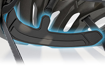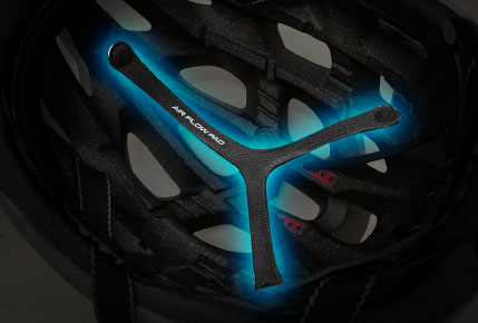 頭部からヘルメットを浮かせてエアルートを確保するフローティング構造と、Y字形状により接触面積を減らし通気性向上に貢献する「エアフローパッド」を搭載。