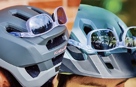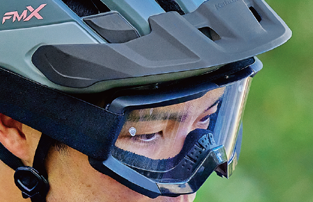 可動式バイザー(上下5段階)でゴーグルを使用しないシーンなどではこの部分にゴーグルをホールドできます。