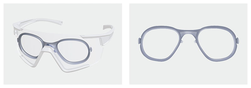フレームの内側に度入りのレンズを装着可能な専用「インナーフレーム」(別売)対応。