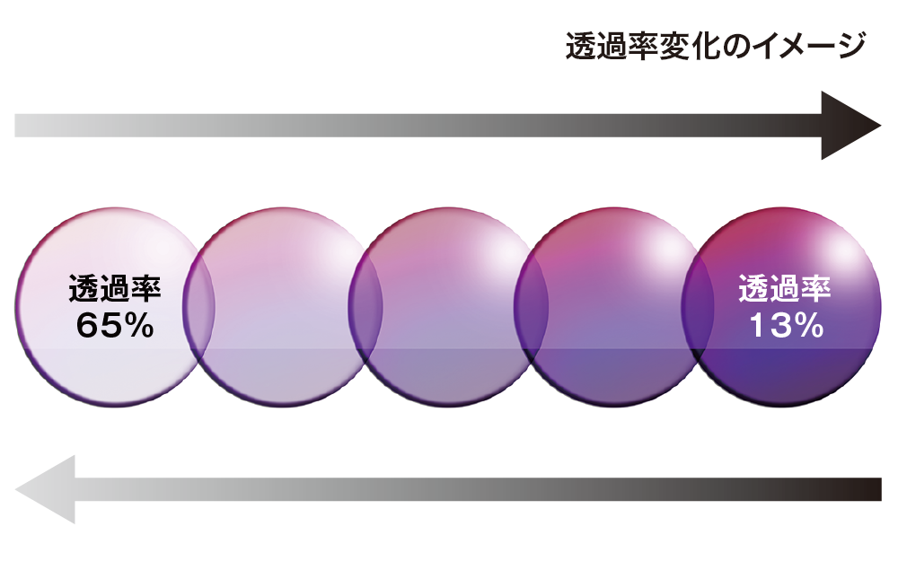 - 使用環境により調光濃度及び調光スピードが異なります。また経年変化により調光性能の減退が起こりますが、調光レンズの特性上、不可避な現象であり、ご理解の上ご購入ください。
