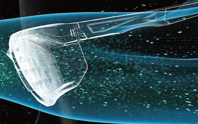 DOCKの開発にはヘルメットの開発などと同じCFD解析(流体解析)を用い、より効果的な防風・防塵性能のためのデザインを構築しています。