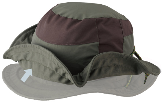広めのツバで日差し対策にも。フチに仕込んだワイヤーで型のニュアンスを好みに応じて造れます。