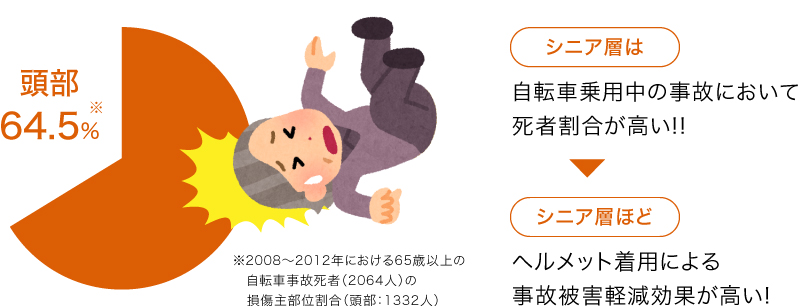 日常生活に自転車は欠かせない移動手段。近頃は電動アシスト自転車が人気ですが、自転車が関わる交通事故は国内で約3分に1件発生中で、その死亡原因は60%以上が頭部のケガ。とくにシニア層における割合は深刻です。正しく着用すれば死亡リスクがおよそ1/4になるのが自転車ヘルメット。大切な方の命を守るためにお勧めします。