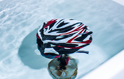 洗面器などに水もしくはぬるま湯※をため、ヘルメットから取り外したインナーパッドをそこに浸します。インナーパッドに水分を含んだら、シャンプーもしくはボディソープを数滴手に取り、優しくもみ洗いを行い汚れを落とします。泡が無くなるまでしっかりすすぎ洗いをしたら、タオルなどでインナーパッド全体をやさしく包み込みながら水分を取り除きます。